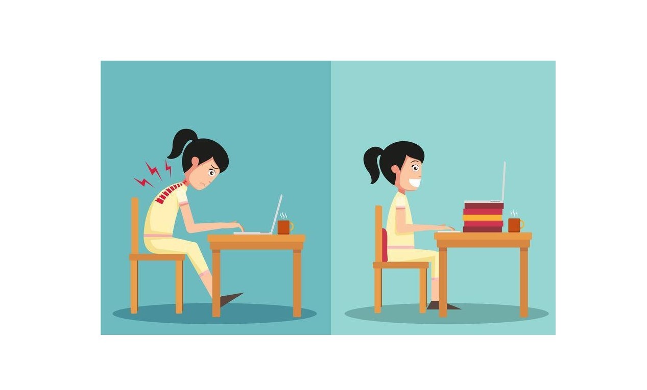 The laptop is always a challenge when trying to sit ideally when working. The challenge lies in the fact that the keyboard and monitor are attached to each other, so it is difficult to maintain proper ergonomics. The first challenge is that the screen tends to be lower than a traditional monitor and you have to look down on your screen. When working on a computer frequently you need to maintain the monitor level, so your eyes are in line with the top portion of the monitor while maintaining proper posture.